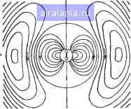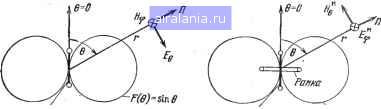 Главная -> Антенны 0 1 2 3 4 5 [6] 7 8 9 10 11 12 13 14 15 16 17 18 19 20 21 22 23 24 25 26 27 28 29 30 31 32 33 34 35 36 37 38 39 40 41 42 43 44 45 46 Напрабление распространения элетро-тгнитной болны Напрабление распрсстранетя - эпентротгнит- ной ЙОПНЫ Пробод Рис. 3.1. Упрощенная картина образования ;Электромагнитной волны ![]() ![]() Рис. 3.2. Картина силовых линий электрического поля вблизи диполя Рис. 3.3. Взаимное расположение векторов напряженности электрического Е и магнитного Я полей в дальней зоне, электрического диполя "Как следует из теории диполя Герца, расположенного в свободном пространстве, мгновенное значение напряженности электрического поля, создаваемого на больших (по сравнению с длиной волны) расстояниях, т. е. в дальней зоне, определяется выражением 30/ р/ sin 6 sin (to f - P r). (3.1) Здесь все величины даны в системе единиц СИ; /т -амплитуда тока диполя; Р - коэффициент фазы, называемой также волновым числом; p=2ixA; I - длина диполя, г - расстояние от диполя до точки наблюдения; 6 - угол между осью диполя и направлением на точку, в которой определяется поле; © - угловая (или круговая) частота изменения электрического поля, равная соответствующей угловой частоте синусоидального тока питания диполя; t - время. Выражение (3.1) определяет поле волны, распространяющейся в пространстве. Множитель sin 6 определяет зависимость напряженности поля от направления в пространстве. Он показывает, что вдоль оси (6=0) поле равно нулю, е. диполь вдоль своей оси не излучает; в экваториальной плоскости (6=90°) напряженность поля получается максимальной. Множитель sin(cu/--pr) пока- зывает, что по мере распространения волны поле убывает по фазе на угол рг, т. е. запаздывает на время, необходимое волне, чтобы дойти до рассматриваемой точки пространства. Направления силовых линий Е и Я перпендикулярны друг к другу и направлению распространения волны, образуя правовинтовую систему. Взаимное расположение этих полей показано на рис. 3.3. Линии Eq лежат в плоскости, проходящей через ось диполя, а линии Я - в плоскости, параллельной плоскости хоу. Направление распространения П совпадает с радиусом л Такая картина поля является характерной для поперечной электромагнитной волны (называемой волной Т). В заключение отметим, что многие простейшие антенны, применяемые в диапазонах длинных, средних и коротких волн, имеют электрические свойства и параметры, похожие на соответствующие параметры диполя Герца. 3.2. Малый виток провода с током (рамка) Другим простейшим излучателем является небольшой виток провода (рамка) с переменным электрическим током. При размерах витка, малых по сравнению с длиной волны (соответствующей частоте переменного тока), амплитуду н фазу тока во всех точках провода практически можно считать неизменными. Из теории такого излучателя следует, что магнитное поле горизонтальной рамки идентично по структуре электрическому полю вертикального элементарного электрического диполя; аналогично электрическое поле горизонтальной рамки идентично магнитному полю вертикального электрического диполя. Поэтому горизонтальную рамку можно трактовать как некоторый эквивалентный вертикальный магнитный диполь. Мгновенное значение напряженности электрического поля, создаваемого указанным рамочным излучателем в свободном пространстве в дальней зоне в произвольном направлении, определяется выражением, аналогичным выражению (3