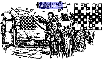 - Этот кусок гобелена, сэры, - сказал он, - состоит из ста шестидесяти девяти маленьких квадратиков. Я хочу, чтобы вы указали мне способ, каким следует разрезать его на три части, дабы сложить из оных один новый кусок в форме правильного квадрата. Более того, поскольку это можно сделать разными способами, я хотел бы знать тот, при котором две из частей будут вместе содержать как можно больше этого богатого материала. Обойщик, разумеется, считал, что разрезы должны проходить только по прямым, разделяющим квадратики. Кроме того, поскольку материал с обеих сторон неодинаков, части нельзя переворачивать, но особое внимание следует обратить на то, чтобы они точно подходили друг к другу по рисунку. 9. Головоломка Плотника. Плотник принес небольшой резной деревянный столбик и сказал: - Живет в Лондоне один школяр, поднаторевший в астрологии и других странных науках. Как-то принес он ко мне деревянный брус, имевший три фута в длину, один в ширину и толщина которого тоже равнялась од- ному футу, и захотел, чтобы я вырезал из бруса столбик, который вы все здесь видите. Школяр пообещал, ЧТО заплатит мне за каждый кубический дюйм дерева, удаленный при работе. Я сперва взвесил брус. Оказалось, что он содержит ровно тридцать фунтов, тогда как ЭТОТ столбик весит только двадцать. Значит, я удалил прочь один кубический фут (то есть одну треть) из бруса в три кубических фута. Но школяр уперся: нельзя, говорит, судить о плате за работу по весу, потому, мол, что брус в середине мог оказаться тяжелее или, наоборот, легче, чем снаружи. Как же я тогда проще всего смогу удовлетворить привередливого школяра и показать ему, сколько дерева было удалено? На первый взгляд этот вопрос кажется трудным, но ответ на него до того прост, что способ Плотника следует знать каждому, поскольку эта маленькая хитрость может пригодиться в повседневной жизни. 10. Головоломка Йомена. Среди пилигримов был и Йомен. По словам Чосера, «лесной охоты ведал он закон», и у него «За кушаком, как и наряд, зеленым Торчала связка длинных острых стрел. Чьи перья Йомен сохранить умел, - И слушалась стрела проворных рук. С ![]() Иомен - лично свободный крестьянин, обязанный служить во время войны своему сюзерену. - Примеч. пер. ним был его большой могучий лук...» Когда в один из дней вся компания остановилась в придорожной таверне под названием «Шашки», у входа в которую красовалась шахматная доска, он решил продемонстрировать товарищам по путешествию свое умение. Выбрав девять стрел, он сказал: - Заметьте себе, добрые сэры, как я пущу эти стрелы - каждую в середину одной из клеток этой доски, причем ни одна из стрел не окажется на одной линии ни с какой другой стрелой. На приведенном здесь рисунке показано, KaiK он это сделал: действительно, ни одна из стрел не находится на одной вертикали, горизонтали или диагонали ни с какой другой стрелой. Тут Йомен добавил: - А вот вам и головоломка. Передвиньте три стрелы, каждую на одну из соседних клеток, так, чтобы при этом все девять стрел расположились вновь таким образом, чтобы ни одна не лежала на одной прямой ни с какой другой стрелой. Под «соседней» имеется в виду любая клетка, расположенная рядом с данной по вертикали, горизонтали или диагонали. 11. Головоломка Монахини. - Уверена, что среди вас нет ни одного, - сказала Монахиня при одной из следующих оказий, - кто не знал бы, что