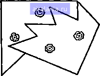 ЛИШЬ 40 футам (сложите 32 в квадрате с 24 в квадрате и извлеките квадратный корень). Легко видеть, что на самом деле паук ползет по пяти из шести различных сторон комнаты! Отметив путь, сложите вновь коробку (удалив сторону, по которой паук не ползет), и вид наикратчайшего пути окажется довольно удивительным. Если бы паук придерживался пути, который большинству, очевидно, покажется кратчайшим (путь /), то ему пришлось бы проделать 42 фута! На пути 2 расстояние составило бы 43,174 фута, а длина пути 3 оказалась бы равной 40,718 фута. Я предоставляю читателю определить наикратчайшие пути, когда паук и муха находятся соответственно от потолка и пола на расстояниях 2, 3, 4 и 5 футов. 76. Брат Джон дал первому человеку три большие и одну маленькую бутылки, полные вина, и одну большую и три маленькие пустые бутылки. Каждому из двух оставшихся он дал две большие и три маленькие бутылки вина и две большие и одну маленькую пустые бутылки. Таким образом, каждый из трех человек получил равную долю вина и одинаковое количество бутылок каждого размера. 77. На рисунке показано, как следует разрезать кусок материи на две части. Опустите правую часть на один ![]() «зуб», и вы получите правильный квадрат с симметрично расположенными розами. 78. Небольшое исследование данной головоломки убедит читателя, что Хендрик никогда не сможет схватить черную свинью и что белая свинья никогда не будет схвачена Катрюн. Каждая свинья просто вбегает в один из ближайших углов и выбегает из него, и ее никогда не удастся схватить. Как это ни странно на первый взгляд, датчанин не может схватить черную свинью, а его жена белую! Но каждый из них без труда может поймать свинью другого цвета. Так что если первый игрок решит послать Хендрика за белой свиньей, а Катрюн за черной, он безо всякого труда выиграет за небольшое число ходов. Это на самом деле столь просто, что даже нет необходимости приводить запись партии. С помощью этой игры мы решаем головоломку из реальной жизни. Дат- чанин и его жена не могут поймать свиней, потому что по своей простоте и незнанию нрава датских свиней каждый бегает не за тем животным, за которым нужно. Принцип, на котором строится эта головоломка, известен шахматистам как «переход в оппозицию». В случае головоломки ходы напоминают ходы шахматной ладьи с дополнительным условием, что ладья может ходить лишь на соседнюю клетку. Если число клеток в том же ряду между мужчиной или женщиной и свиньей нечетно, то свинью схватить нельзя, если же это число четно, то схватить ее можно. Число клеток между Хендри-ком и черной свиньей, а также между Катрюн и белой свиньей равно 1 (нечетное число), следовательно, они не смогут поймать соответствующих свиней. Но число клеток между Хендриком и белой свиньей, а также между Катрюн и черной свиньей равно 4 (четное число), значит этих свиней они смогут легко поймать. 79. Начав с 5, первый игрок может всегда выиграть. Если ваш противник тоже пойдет с 5, то вы пойдете с 2 с суммой 12. Далее, когда он будет ходить 5, вы ходите 2, и если на каком-нибудь шаге он выпадет из ряда 3, 10, 17, 24, 31, вы вступите в него и выиграете. Если же после вашего первого хода 5 он вместо 5 выберет что-то другое, вы сделаете 10 или 17 и выиграете. Первый игрок может также выиграть, начав с 1 или 2, но игра довольно запутанна. Однако она стоит того, чтобы читатель изучил ее. 80. В эту головоломку за