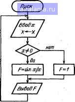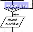 Главная -> Справочник по алгоритмам 0 1 2 3 4 5 6 7 8 9 10 11 12 [13] 14 15 16 17 18 19 20 21 22 23 24 25 26 27 28 29 30 31 32 33 34 35 36 37 38 39 40 41 42 43 44 45 46 47 48 49 50 51 52 53 54 55 56 57 58 59 60 61 62 63 64 65 66 67 68 69 70 71 72 73 74 75 76 77 78 операции исполняются от начала до конца - см. пример вычисления площади круга по формуле S=nD/4. Словесный алгоритм при этом следующий. 1. Введем численное значение D и присвоим его переменной DiD-D). 2. Вычислим nDfA и присвоим полученное значение переменной S {5-лО/4). 3. Выведем на печать значение переменной S. 4. Организуем останов ЭВМ. ZBBodD / Вьтисление Стоп Рис. 2.3. Алгоритм вычисления площади круга Соответствующий графический алгоритм показан на рис. 2.3, а, программа имеет вил й5 REMВЫЧИСЛЕНИЕ ПЛОЩАДИ КРУГА 10 INPUTВВЕДИТЕ ДИАМЕТР КРУГИ D=D ге иЕТЗ=#Р1ж112-4 30 PRINTПЛОЩАДЬ КРУГА S=S 40 END Обратите внимание на комментарии при операторах INPUT в строке 10 и PRINT в строке 30. У разветвляющихся программ вычисления производятся в различных частях в зависимости от заданных исходных данных или результатов вычислений. Это обеспечивают операторы условных переходов. На рис. 2.4 ![]() показан графический алгоритм вычисления функции F{x) =sm х/х при хфО и f(;) = l при х = 0. Соответствующая программа приведена выше (в § 2.1) при описании операторов IF...THEN. Циклические программы обеспечивают циклическое (т. е. повторяющееся) выполнение отдельных фрагментов заданное или конечное, но неопределенное число раз - до получения регультата с заданной погрешностью. Циклы с заданным числом повторений организуются с помощью операторов FOR ... ТО ... STEP и NEXT. Примеры правильной и неправильной организации ряда циклов даны на рис. 2.5. -/т 11 ТО N -I-FOR 1=2 ТО М -r-FOfi Л=5 ТО Р - NEXT К- I-NEXT I- -NEXT I-а -FOR 1=1 ТО N ••• -FOR 1=2 ТО М -rFOR Я=3 Р ••• Рис. 2.4. Алгорнт.м вычисления функ11ии sin х/х NEXT I.................... •NEXT J.................... NEXT Н....................... Рис. 2.Ъ. Правильная (и) и неправильная (б) организации циклов с помощью операторов 1-OR и NEXT Пример. Построение циклической программы с циклом, повторяющимся заданное число раз. Пусть надо вычислить А-е число Фибоначчи. Hiiiro.MHn.vi, что числа Фибоначчи образуют носледовательность, у которой каждый очередной член равен сумме двух предыдущих: 0 11 L> 3 5 8 13 21 34 2-(-;i = ,-i r:i-(-2l=34 С-ловесное описание алгоритма может быть следующим. 1. Задаем число N. 2. Присвоим переменной А значение О (.А-1-0), а переменной В значение 1 (В-.-1). 3. Организуем цикл вычислений С = = А--В, организовав счетчик цикла с помощью переменной I, значение которой должно меняться от начального 1 = 3 до конечного I = N с шагом, равным 1. В конце каждого числа проведем замену переменных: АВ и ЪС. 4. При I = N зададим выход из цикла Графический алгоритм вычислений пока-и выведем на индикацию число С. зан на рис. 2.7. 5. Перейдем к выполнению п. 1 с помощью . операции безусловного перехода. С Пуск ) А=0 в=/ \,нет с=а+в а=в в=с ГвыМй I -( Ионеи, } Пуск ) / ВВоВЕ / / Вдовх / 1=7 S=0 Z=S S=S+K/l 1=1+2 ![]() Рис. 2.6. Алгоритм вычисления чисел Фибоначчи Графический алгоритм рещения этой задачи показан на рис. 2.6. Программа имеет вид 18 ШРиТЗАДЙйТЕ N>=3 N=N:LETA=e:LETB= 28 FOR 1=3 ТО N STEP 1 30 LETC=A+BsLETA=sBsLETB=C 40 NEXT I 58 PRINTFN=C:60TO 18!END 60 PRINT!F1.9!FN=C 78 60T0 2e:END В строке 10 организован ввод значения N и присвоение переменным А и В значений О и 1. В строке 20 задан заголовок цикла и указаны пределы изменения (от 3 до N) управляющей переменной 1. Далее в строке 30 проводятся вычисление переменной С = = А + В, присвоение переменной А значения В и переменной В значения С. В строке 40 задан возврат из цикла, если I = N. И, након