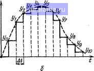 Главная -> Справочник по алгоритмам 0 1 2 3 4 5 6 7 8 9 10 11 12 13 14 15 16 17 18 19 20 21 22 23 24 25 26 27 28 29 30 31 32 33 34 35 36 37 38 [39] 40 41 42 43 44 45 46 47 48 49 50 51 52 53 54 55 56 57 58 59 60 61 62 63 64 65 66 67 68 69 70 71 72 73 74 75 76 77 78 г л А в А 5 СПЕКТРАЛЬНЫЙ, СТАТИСТИЧЕСКИЙ. КОРРЕЛЯЦИОННЫЙ И РЕГРЕССИОННЫЙ АНАЛИЗ § 5.1. Спектральный анализ на основе дискретного преобразования Фурье Спектром временной зависимости (функции) у (t) называется совокупность ее гармонических составляющих (гармоник), образующих ряд Фурье (см. § 4.11). Спектральный анализ периодических функций заключается в нахождении коэффициентов Ок, Ьк ряда Фурье у (0=-f+ у {akCos2nkfit + bksm 2nkf,t), (5.1) где /[ - частота повторения (или частота первой гармоники), k - номер гармоники. Кроме ряда (5.1) широко используется ряд у (0=-f-+ J Мк cos {2nkfJ+ifk}, (5.2) Mk=Mai + bl (5.3) - амплитуда и Ф*=-arctg (fct/ut) (5.4) - фаза гармоник (косинусоид). Применяются также ряды с синусоидами под знаком суммы. Коэффициенты Фурье определяются выражениями т ак=-[ у и) cos 2nkf,t. (5.5) (5.6) где T=l/f[ - период повторения периодической функции у (О- Спектральный анализ непериодических {финитных) функций, т. е. функций, полностью определенных на отрезке [О, to], заключается в вычислении составляющих их комплексной спектральной плотности S (/ш) =Sc (ш) + jSs (ш) =S (to) e-W, bk=\y {П sm2nfa. где (о = 2л/ - угловая частота, S (w)=V[Sc (o))]4[Ss (0))]= (5.7) Ф (о)) = -arctg [Ss (o))/Sc (о))] (5.8) - модуль спектральной плотности и фаза на частоте м. При этом •Sc=S У (О cos iot. Ss=S у (О sin (йЛ (5.9) (5.10) Численный спектральный анализ заключается в нахождении коэффициентов Оо, а..... ok, bi, Ьу, bk (или Ml, М2.....Мк, Ф1, ф(,) для периодической функции y(t), заданной на отрезке [0,7"] дискретными отсчетами. Он сводится к вычислению (5.5) и (5.6) по формулам численного интегрирования для метода прямоугольников (см. § 4.8) i<=~j;j- yiCos2nkf,i At, .(5.11) (5.12) .=0 где At = T/N-шаг, с которым расположены абсциссы у {t). Для финитных функций Sc = At X yicos {2nfAt[), (5.13) Ss = At I/,-sin {2nfAtl). i = 0 (5.14) Найденные no (5.11) и (5.12) коэффициенты Фурье для m = N/2 гармоник приближают у (t) рядом (5.1) или (5.2) с наименьшей среднеквадратической погрешностью. Следовательно, численный спектральный анализ, совместно со спектральным синтезом (§ 4.11), является разновидностью метода наименьших квадратов, когда у {t) приближается тригонометрическим рядом. обобщенный, численный спектральный анализ базируется на том, что периодические функции у (t) являются частными случаями финитных функций. Действительно, полагая ti] = T (этим мы условно приписываем финитным колебаниям период 7") и считая f=kf, (при финитных функциях k - любые, а при периодических - целые числа), из (5.11), (5.13) и (5.12), (5.14) получаем с. N-i a*N V „ел У< cos 2я/ Д/, ![]() (5.15) (5.16) Численный спектральный анализ повышенной точности основан на априорном представлении у (t) в промежутках между узлами. Если такое представление невозможно, используются формулы (5.15) и (5.16), дающие наименьшую среднеквадратичную погрешность (рис. 5.1, а). Если г/(/) =const в промежутках между узлами (рис. 5.1,6), Использование только ненулевых отсчетов позволяет уменьшить время анализа, если у [Т)=0 в начале или конце отрезка [0,7"] или [О,/п]. Однако отсчеты у,=0 при Л?1 М должны вводиться. 3. Задаем шаг Д/. 4. Переменным С и S присваиваем нулевое значение, организуем ввод частоты f и находим pnf Ы. 5. Находим Ло и Во с помощью цикла, в котором вычисляются C = C+t/iCos (2ip), S = S-f(/isin (2ip), где i - N\, yVl-f 1, M. При выходе из цикла Лс=С и Во=С. 6. Для заданного значения f находим нужные параметры at, bt или Мк и (pt, Sq, Ss или S и ф. Например, для вычисления S