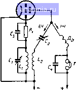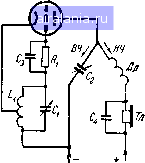Главная -> Радио 0 1 2 3 4 5 6 7 8 9 10 11 12 13 14 15 16 17 18 19 20 21 22 [23] 24 25 26 27 28 29 30 31 32 33 34 35 36 37 38 39 40 41 42 43 44 45 46 47 48 49 50 51 52 53 54 55 56 57 58 59 60 61 62 63 64 65 66 67 68 Н. - Конечно: в сеточной н анодной цепях возникают колебания и генератор представляет собой настоящий маленький передатчик. Л. - Это так, по крайней мере если степень связи между двумя катушками достаточно велика. Если же связь слаба, то колебаний не будет, но этот случай для нас также очень интересен. Ведь при этом мы будем иметь индуктивное воздействие анодной цепи на сеточную, т. е. воздействие выходной цепн на входную, которое называют обратной связью или обратной реакцией. Н. - Словом, это вроде символа мудрости древних - змеи, которая сама кусает себя за хвост. Л. - Если тебе так нравится... Представь себе, что такая лампа с обратной связью использована в радиоприемнике как усилительная (рис. 67). Контур 7,1 Ci служит для приема высокочастотного сигнала н на нем создается слабое напряжение, которое должно быть усилено. При этом через катушку будут проходить усиленные токи анодной цепи, которые в свою очередь наведут напряжение на сеточной катушке L\. Если катушка обратной связи расположена надлежащим образом по отношению к катушке Z-i, то напряжение, наведенное на катушке L\ катушкой L2, усилит первоначально существовавшее на сеточной катушке напряжение. Н. -Таким образом, воздействие анодной катушки L2 иа катушку контура, если я правильно понял, усилит колебания в катушке L\. Но в этом случае эти усиленные колебания будут опять усилены лампой и вызовут в катушке обратной связи Lj еще более сильный ток. Этот ток благодаря индукции еще больше усилит колебания в сеточной катушке и т. д. Значит, усиление будет возрастать бесконечно?! Л. - Не волнуйся, дорогой, при увеличении амплитуды колебаний в цепи сетки одновременно увеличиваются и потери (обусловленные активным сопротивлением и другими причинами), которые, наконец, полностью компенсируют мощность, вносимую из цепи анода. Тем не менее усиление, обусловленное наличием обратной связи, очень значительно, особенно если связь настолько велика, что лампа находится на грани возникновения колебаний или, как говорят, на грани самовозбуждения. КАК РЕГУЛИРОВАТЬ ВЕЛИЧИНУ ОБРАТНОЙ СВЯЗИ ![]() ![]() Н. - Обратная связь напоминает мне укусы комаров. Л. - Признаюсь, не вижу связи с комарами. Н. - Однако это ясно. Когда тебя укусит комар, ты трешь укушенное место, чтобы успокоить зуд, который от этого только возрастает. Тогда ты начинаешь скрести себя с еще большим ожесточением, отчего укушенное место чешется еще больше... После этого ты теряешь всякую осторожность..., и в результате все заканчивается кровопролитием... Точно так же слабые колебания в сеточной цепи усиливаются в результате индукции действием усиленного анодного тока. При этом ток в анодной цепи усиливается еще больше, а последний в свою очередь еще больше усиливает колебания в сеточной цепи. Но, однако, это не кончается кровопролитием, потому что потерн в сеточной цепи ограничивают усиление; так должен был бы поступать наш разум при укусе комара. ![]() ![]() л.- Оставим комаров и вернемся к предмету нашего разговора. Я тебе уже сказал, чго действие обратной связи наиболее эффективно, когда связь между анодной н сеточной цепями поддерживает лампу на пороге самовозбуждения. Н. - Мне кажется, что этого очень легко добиться. Нужно только р