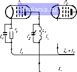 Главная -> Радио 0 1 2 3 4 5 6 7 8 9 10 11 12 13 14 15 16 17 18 19 20 21 22 23 24 [25] 26 27 28 29 30 31 32 33 34 35 36 37 38 39 40 41 42 43 44 45 46 47 48 49 50 51 52 53 54 55 56 57 58 59 60 61 62 63 64 65 66 67 68 л. -Это так. Таким образом, ты можешь заметить, что пен-tfi год является усовершенствованием тетрода и что эта лампа была создана для устранения вредного действия вторичной эмиссии. Вот как выглядит схема усилительного каскада на пентоде (рис. 72). Резисторы R2 и Ri, находящиеся между полюсами \ источника высокого напряжения, служат для установления на- Рис. 72. Схема усилителя высокой частоты на пентоде. JR1C3 - цепь сеточного смещения; RtRai - цепь питания вкрани-рующей сетки. ![]() Одностороннее движение ![]() пряжения на экранирующей сетке, приблизительно равного половине анодного напряжения. Конденсатор С4 служит для того, чтобы пропускать слабый ток высокой частоты, образующийся в цепи экранирующей сетки попадающими на нее электронами. Н. - Я надеюсь, что экраны, тетроды и пентоды окончательно помогут разрешить проблему паразитных связей. Л. - Напрасные надежды, Незнайкин! ![]() БЕСЕДА ЧЕТЫРНАДЦАТАЯ Чем меньше цепи какой-либо пампы связаны с цепями соседних памп, тем пучше работает радиоприемник. Такой вывод сдепапи наши друзья поспе изучения паразитных связей. Помимо рекомендованного ранее экранирования, они рассматривают также возможность применения развязывающих цепей дпя устранения паразитных связей. Переходя к изучению практической схемы, Любознайкин сообщает интересные сведения о способах перекпючения настраиваемых контуров. ![]() ЗАПУТАННЫЕ СВЯЗИ Любознайкин.- До сих пор мы говорили только об индуктивной и емкостной связях, но существуют также связи за счет общих элементов, которыми могут оказаться активные и реактивные сопротивления. Незнайкин. - Я не вижу, где же прячутся эти «общие» сопротивления? Л. - Вот смотри. На рис. 73 схематически изображен трех-каскадный усилитель высокой частоты. Для большей ясности иа схеме нарисованы только анодные цепи, в которых протекают токи h, h и /з ламп JJi, Л2 и Л, ![]() ![]() Рис. 73. в этой схеме анодные токи различных ламп идут по общим путям. Источник высокого (анодного) напряжения условно изображен, как сопротивление. соответственно. Цепи управляющих экранирующих сеток опущены. Проследим теперь с карандашом в руке пути электронных потоков ламп. Ты видишь, что ток /[ от катода лампы Л1 проходит через контур Li С2, потом через участок провода, обозначенный /1, далее через источник высокого напряжения и по «минусовому» проводу возвращается через R\ (резистор смещения) на катод. Теперь проследи таким же образом за анодным током второй лампы /2. Что ты видишь? Н. - Действительно,ток /2 часть своего пути проходит по тем же участкам цепи, что и ток 1\, а также через источник вы- Сокого напряжения. То же происходит и с током /з, проходящим через источник высокого напряжения и участки /1+/2 + /3, по которым протекают одновременно три тока. Вот где возникает мешанина и путаница токов! Л.- Если бы источник высокого напряжения и соединительные цепи не имели сопротивления, можно было бы не бояться никакой мешанины. Но, к несчастью, это не так; каждый из токов вызывает на сопротивлениях общих участков падение напряжения. Постоянные составляющие не представляют никакой опасности. Но напряй<ения переменных составляющих, образующиеся на общих участках сопротивлений, попадают в другие цепи, в результате чего паден