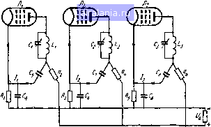 Главная -> Радио 0 1 2 3 4 5 6 7 8 9 10 11 12 13 14 15 16 17 18 19 20 21 22 23 24 25 [26] 27 28 29 30 31 32 33 34 35 36 37 38 39 40 41 42 43 44 45 46 47 48 49 50 51 52 53 54 55 56 57 58 59 60 61 62 63 64 65 66 67 68 ![]() ![]() ![]() Рис. 74. Благодаря применению развязки переменные составляющие тока каждой лампы замыкаются через отдельные цепи, показанные жирными линиями. Теперь можно изобразить (рис. 75) полную схему одного каскада усиления высокой частоты современного радиоприемника. Это точно такая же схема, как и на рис. 74. Н. -А мне кажется, что она не совсем такая. Ведь на рис. 74 конденсаторы развязки Cs, C и Cg присоединены непосредственно к катодам соответствующих ламп, а на рис. 75 конденсатор развязки Cg присоединен к минусу источника высокого напряжения. Л. - Ты прав. Теоретически такое включение менее действенно, так как переменная составляющая анодного тока вместо того, чтобы возвратиться на катод через конденсатор Cs, должна, кроме того, пройти через конденсатор Сз, что для высокочастотной составляющей несколько более утомительно. Однако практически эта схема имеет некоторые преимущества. Ты, конечно, уже заметил, что большинство соединений в схеме радиоприемника оканчивается у отрицательного полюса источника высокого напряжения. Чтобы отрицательный полюс находился на возможно кратчайшем расстоянии от различных элементов, которые должны быть к нему присоединены, прокладывают общую шину из более толстого проводника, идущую от минуса высокого напряжения через весь приемник. Или, что встречается чаще, но менее желательно, в качестве этого провода используется металлический корпус (шасси), на котором монтируется приемник. В данном случае корпус служит также и минусом высокого напряжения. И тогда вместо того, чтобы сказать, что соединение заканчивается у минуса высокого напряжения, говорят, что соединение производится на корпус. ![]() Рис. 75. Схема каскада усиления высокой частоты на пентоде с цепями развязки. ![]()