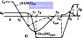 Главная -> Симисторы 0 1 2 3 4 5 6 7 8 9 10 11 [12] 13 14 15 16 17 18 19 20 21 22 23 24 25 26 27 28 29 30 31 32 33 34 35 36 37 38 Pj 1 п. ![]() Рис. Ъ1. Np-n-p-n структура: а - без перекрытия проекций эмиттерных переходов; 6 - с перекрытием проекций змитгерных Переходов; в - временные зависимости тока нагрузки и напряжения на симисторе Процесс включения аналогичен процессу выключения тиристора. Временные зависимости тока нагрузки и напряжения на симисторе имеют вид, представленный на рис. 37, е. До момента времени, принятого за нуль, симистор находился в открытом состоянии и через него протекал ток 1ц. Напряжение на симисторе в открытом состоянии мало и равно примерно ] -2 В. В момент времени t О ток через симистор с определенной скоростью {di/dt\„ начинает уменьшаться до нуля. С момента времени ti начинается процесс выключения симистора. Одновременно с уменьшением тока слегка уменьшается и напряжение на симисторе. В момент времени ti ток через симистор становится равным нулю. Однако напряжение на симисторе еще не достигает нуля. Это обусловлено тем, что избыточный заряд в базах исчезает не сразу. К моменту времени ti в базах тиристора сохраняется некоторый избыточный заряд электронов и дырок. Поэтому к моменту времени и некоторое время после него переходы симистора оказываются прямосмещенными, т.е. имеют очень малое сопротивление. В результате ток через симистор после момента времени f, меняет знак и течет в обратном направлении. Вследствие изменения направления тока изменяет свою полярность и падение напряжения на базовых слоях прибора. Падение напряжения на базовых слоях вычитается при этом из суммарного падения напряжения на электронно-дырочных переходах симистора. Поэтому напряжение на симисторе после спада тока до нуля быстро уменьшается и, так же как и ток, изменяет свое направление. Первым обратное сопротивление восстанавливает переход /3. Однако напряжение пробоя этого перехода имеет значение порядка 10 В. Поэтому восстановление обратного сопротивления перехода /3 практически не приводит к ограничению обратного тока через тиристор. Обратный ток нарастает до тех пор, пока не начнет восстанавливать свое обратное сопротивление р-п переход /1. Обратный ток, начиная с момента t, уменьшается, а обратное напряжение на симисторе возрастает до значения напряжения источника в си-повой цепи. В момент времени обратное сопротивление перехода /i можно считать полностью восстановленным. При f > f 3 к симистору приложено обратное напряжение и через него протекает незначительный обратный ток. В момент времени напряжение на симисторе начинает уменьшаться с определенной скоростью и, пройдя через нуль, в момент времени f 5 меняет полярность с обратной на прямую и возрастает затем до значения t/p. Нагрузочный ток через симистор в момент времени Г4 может изменить направление с обратного на прямое. Это обусловлено протеканием через переход /1 емкостного тока, направленного от слоя pi в сторону базы И]. Емкостный ток перехода пропорционален его барьерной емкости и скорости изменения напряжения. Если ток превышает обратный ток перехода /j, результирующий ток через симистор изменяет направление с обратного на прямое. С уменьшением обратного напряжения на переходе /1 епз обратный ток уменьшается. Емкостный же ток возрастает при заданной постоянной скорости изменения напряжения, так как барьерная емкость пе