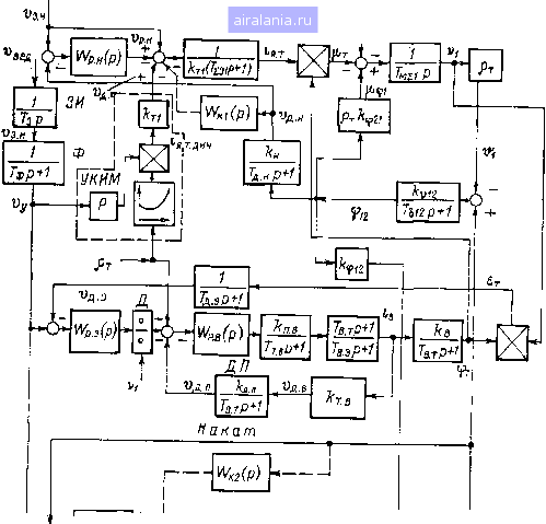Главная -> Математическое описание сэп 0 1 2 3 4 5 6 7 8 9 10 11 12 [13] 14 15 16 17 18 19 20 21 22 23 24 25 26 27 28 29 30 31 32 33 34 = 4/(VitOyi), обеспечивающий 5%-ное перерегулирование скорости секции при ступенчатом изменении щ. На входы СЭП остальных секций также следует включить фильтры с Ti = 7 . При этом секции, имеющие большие значения oi.i, в начальный период переходного процесса будут несколько опережать секции с меньшими сосг а в конце переходного процесса - несколько отставать, что обеспечит наименьшие деформации обрабатываемого материала при изменении скорости агрегата. При выборе ступеней и скорости изменения иед необходимо стремиться к тому, чтобы в переходном процессе отсутствовало как ограничение выходных напряжений регуляторов скорости секций, так и ограничение токов двигателей нулевым значением в случае применения нереверсивных вентильных преобразователей. В противном случае будет наблюдаться размыкание СЭП, что может привести к недопустимому растяжению или обрыву материала при действии возмущений в период управления скоростью агрегата. Допустимое ступенчатое изменение иед в процентах, при котором отсутствуют ограничения, может быть определено по формуле Диед,- =--100, (2.58) где Кф1 - коэффициент, учитываюший включение фильтра на входе АСР и определяемый по графику, приведенному в нижней части рис. 2.10. По формуле (2.58) рассчитываются значения Двед* Для всех секций агрегата и находится минимальное значение Aub для некоторой, k-й, секции, которое сравнивается с допустимым ступенчатым изменением Дивед.д, определяемым технологическими требованиями в каждом конкретном случае. Окончательное решение, определяющее требования к дискретности напряжения задат-чика уровня скорости агрегата, принимается по наименьшему из значений Двед/. и ДУреД.д. Период переключения ступеней Ди.ед определяется длительностью экспоненты 1)3.,, (О на выходах фильтров, равной /р л; I2/(Vj tOyi). Тогда скорость изменения в процентах в секунду при Дигед?>ДJEeд. д определястся формулой вед вед.д V?i COyi (2.59) (2.60) dt 12 а при Ди;зед/;<Дивед. д - соответственно <"Еед 16,7/Сфй Vд\ (Hyi Tu-Lk VЯк Wyft Если окажется, что базовая секция с минимальной частотой среза 0)с1 имеет и минимальное значение ДУвед, то формула (2.60) примет вид сгУвед 40 (2.61) Если ведущее напряжение изменяется не ступенчато, а более плавно, что определяется устройством задатчика скорости, то предложенные рекомендации обеспечат лучшие условия управления скоростью агрегата. Динамика многодвигательных СЭП агрегатов циклического действия. К циклическим агрегатам с разомкнутыми упругими связями второго рода относятся многие агрегаты, производящие отделку ленточного материала (продольная и поперечная резка, отделка поверхности и т. п.) после выработки его на непрерывно-поточном агрегате. В отделочных агрегатах в настоящее время применяются многодвигательные ЭП постоянного тока с индивидуальными тиристорными преобразователями (ТП) и системами подчиненного регулирования. Работа таких ЭП характеризуется взаимосвязью электрических и механических факторов, влиянием упругости обрабатываемого материала, действием различного рода возмущений (момент сопротивления, эксцентриситет механизма и др.) и естественной вариацией параметров системы при изменении режима работы агрегата. Все это существенно осложняет коррекцию СЭП и в связи с возросшими требования